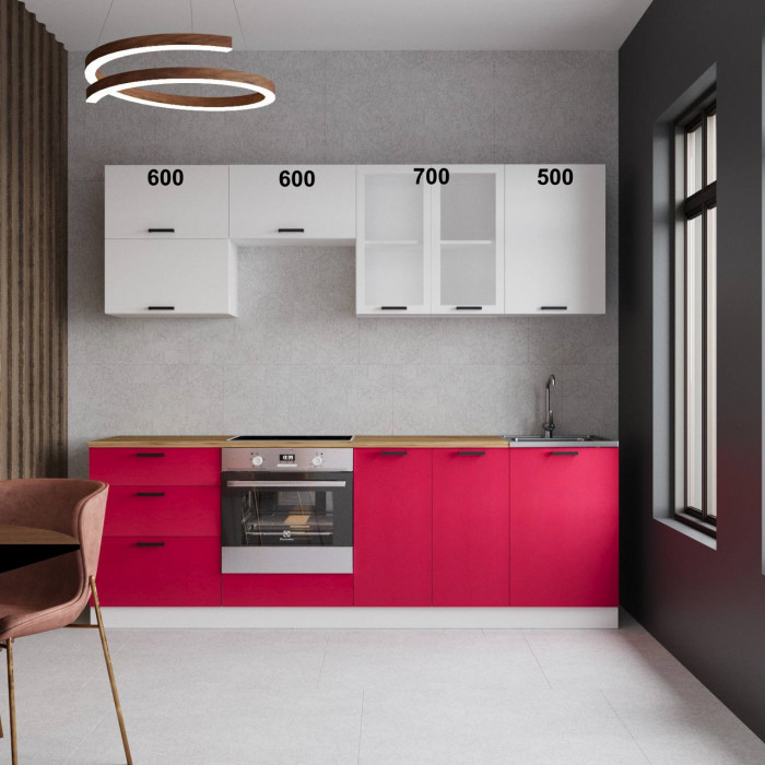 В стоимость не включено: стеновая панель, бытовые приборы, смеситель, аксессуары, духовой стол, мойка и столешница под врезную мойку.