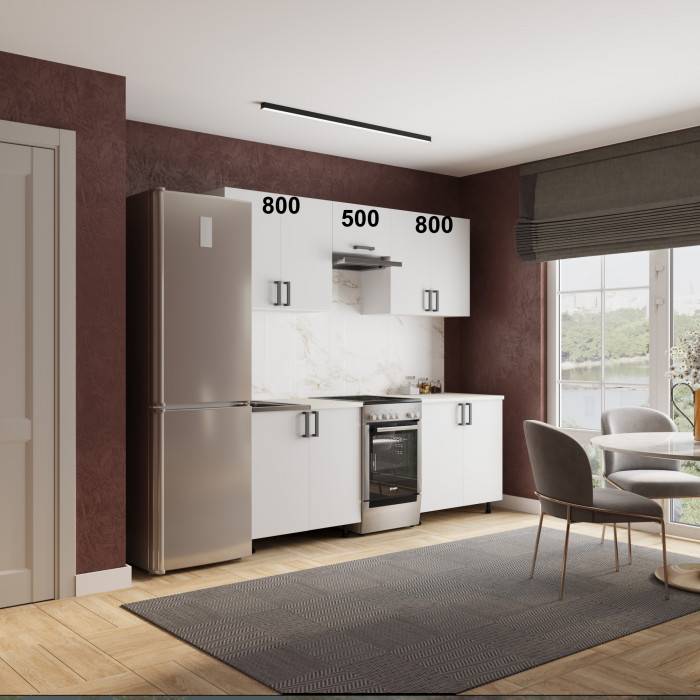 В стоимость не включено: стеновая панель, бытовые приборы, смеситель, аксессуары, мойка и столешница под врезную мойку.