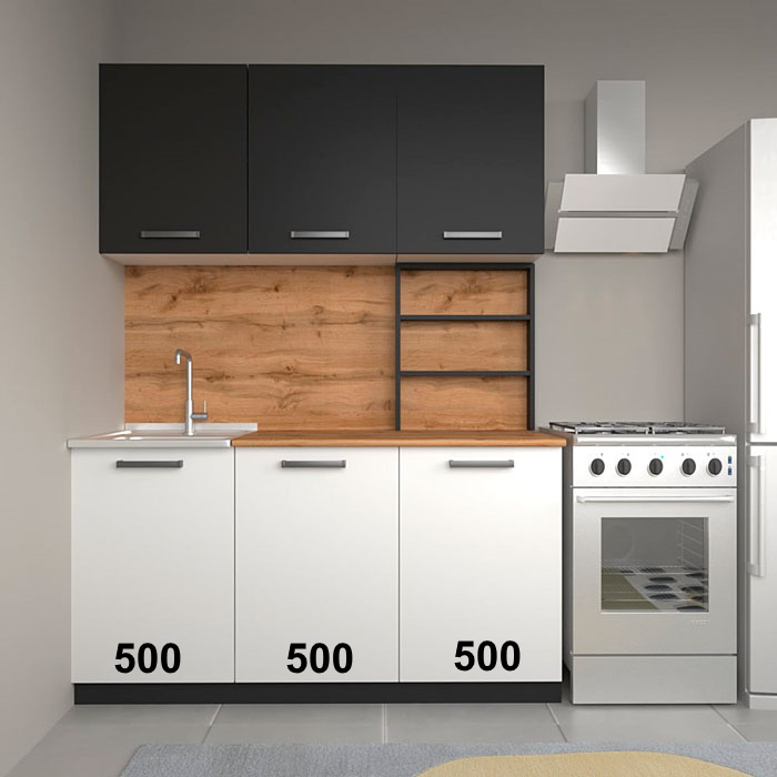 - Кухня в базовой комплектации идет на черных пластмассовых регулируемых ножках (металлические хром. +150р/шт, например, можно поменять только по лицевой фасадной части).