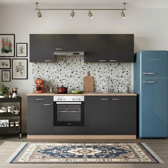 Современный дизайн кухни «Антрацит -19» легко впишется в любой интерьер. Вы можете выбрать один из базовых цветов, уже включённых в стоимость, или за небольшую доплату создать свою уникальную кухню, выбрав цвета из дополнительных категорий.