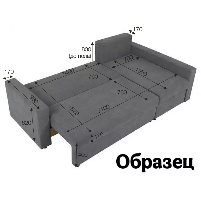 Размеры дивана (ШхВхГ, см): 244х83х152