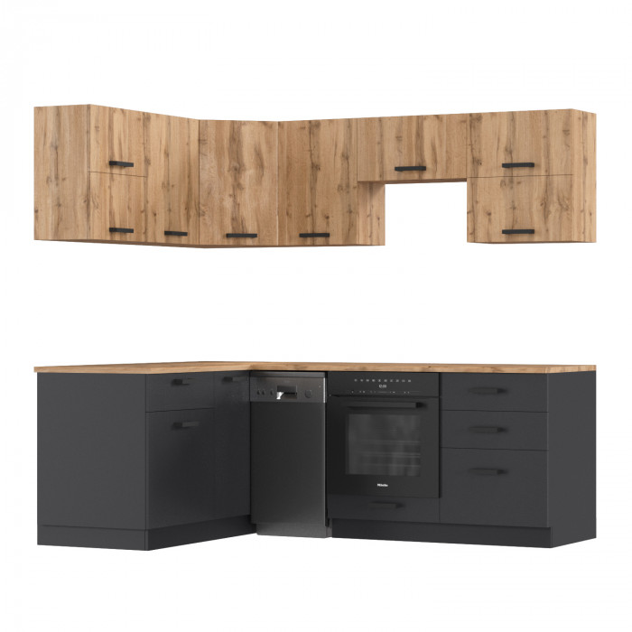 Кухня "Антрацит + Дуб вотан" угловая