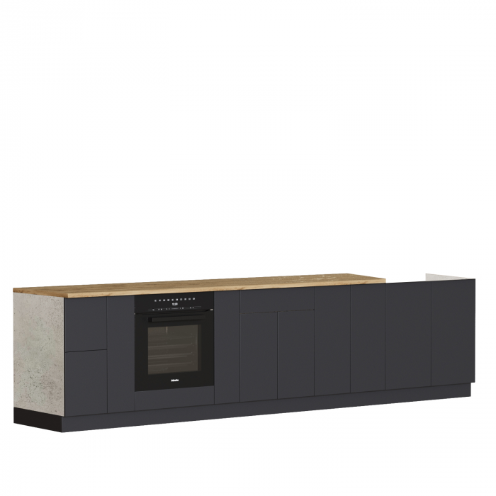 В стоимость не включено: стеновая панель, бытовые приборы, смеситель, аксессуары, мойка и столешница под врезную мойку.