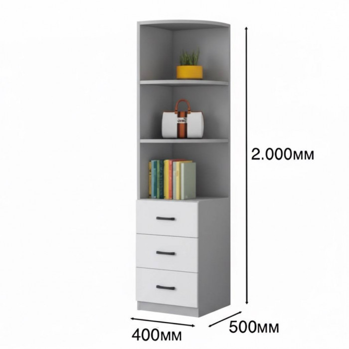 Угловой модуль 02 Серый+Белый высота 2.0м правый