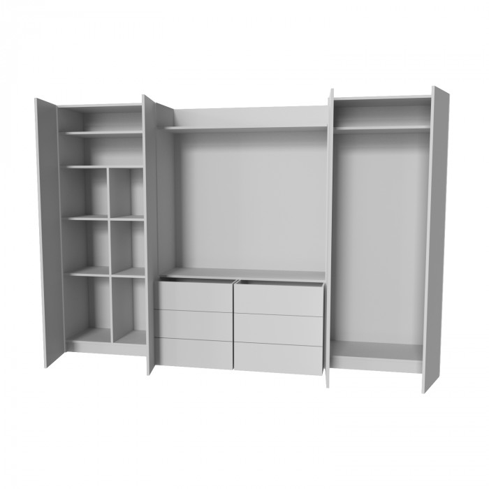 - правый шкаф (1000 мм): Перекладина для верхней одежды + полка для головных уборов.